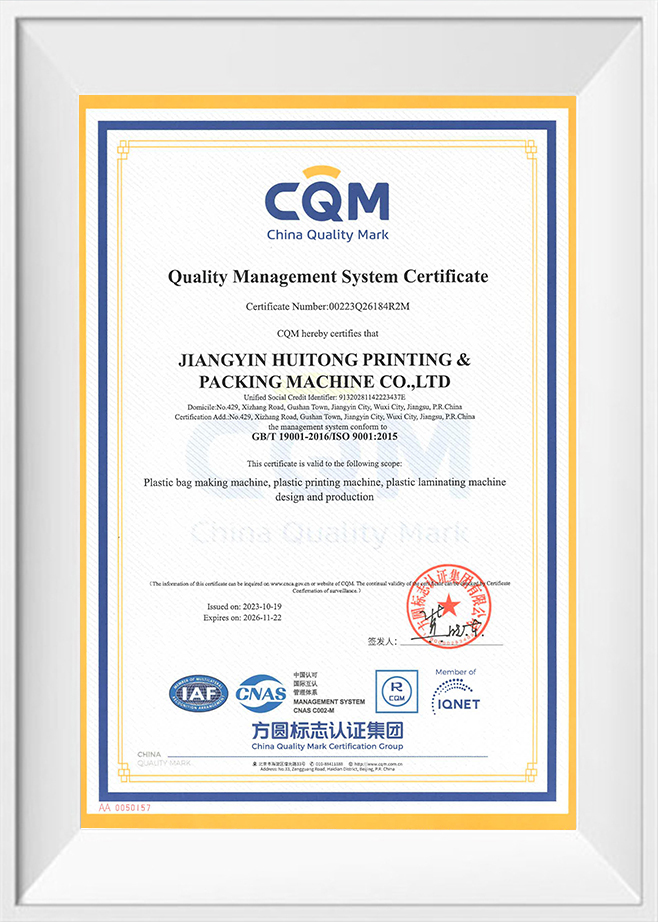 Máquinas de embalagem Co. de Jiangyin Huitong, Ltd. was established in 1996. It is located in the core area of the Yangtze River Delta Gushan Town, Jiangyin City, and covers an area of more than 100 acres. Professional produce a series of international advanced flexible packaging machinery. Now, Huitong has more than 500 employees. Among them, more than 50 are research and development inventors. The Mission of “facing to the world by innovation” leads Huitong to vigorously focus on research and development of new products. Huitong now has more than 400 patents, including 43 invention patents. Was rated “ High-tech Enterprise in Jiangsu Province”.